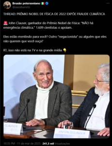 Um dos gigantes da ciência contemporânea, o Dr. John Clauser, assinou a Declaração Mundial para o Clima (WCD – World Climate Declaration), que declara que não há emergência climática. Dr. Clauser é o ganhador do Prêmio Nobel de Física do ano passado e recentemente abalou a indústria do clima, afirmando que a narrativa popular do clima “reflete corrupção perigosa na ciência, que ameaça a economia global e o bem-estar de bilhões de pessoas”.